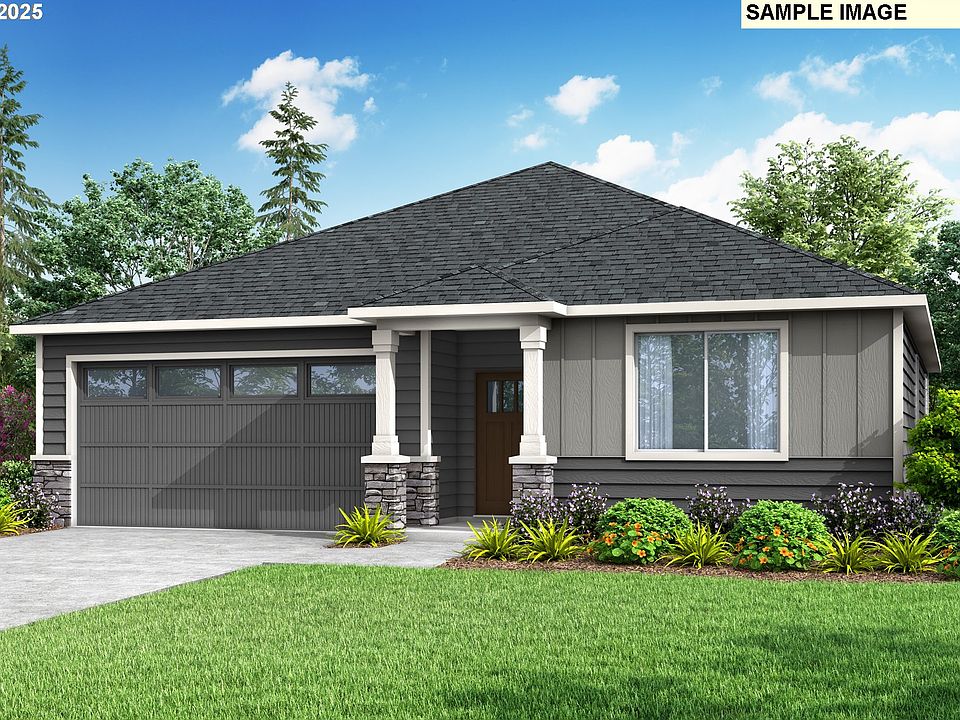 Welcome to your dream home in Faraday Hills, Estacada! This new 1,594 sq. ft. single-story Craftsman offers 3 bedrooms, 2 baths, and a spacious 2-car garage. The open great room with vaulted ceilings flows seamlessly into a modern kitchen featuring a pantry, island, dishwasher, and energy-efficient appliances. Enjoy a fenced 6,200 sq. ft. lot with front landscaping, irrigation, and access to 17 acres of greenspace with walking trails. Energy-efficient heat pump, double-pane windows, and a covered patio enhance comfort and style. Estimated completion September 2025. Perfect for easy living near Mt. Hood’s outdoor adventures. Sample photos, finishes will vary. Sales Office @ 3675 NE Claire Rd open Wed-Sun from 11am to 6pm.