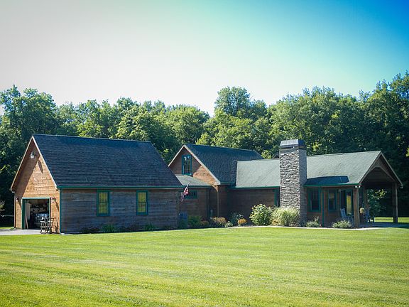 Seclusion, privacy, recreation... ! This breathtaking home sits a 1/2 mile off and is not visible from the road. The driveway winds you back to a picturesque setting for this Chalet style, 4 bedroom 2 bath home; built in 2004, and added on to in 2008. The cedar sided home overlooks the spring fed pond and offers a 2 car attached garage, 30x40 pole barn, hot tub, generator, and all appliances as well as a Vermont Casting interior woodstove fireplace insert. Sunsetter patio awning, knotty pine interior and red oak floors. Lots of storage in the crawlspace areas on the sides of the basement. Outdoor woodburner negotiable. Over 1/2 acreage is wooded and fantastic hunting in the heart of Hillsdale Co Big Buck Country! 3rd bed is a loft w/ spiral staircase, possible 4th bed is a walk through.