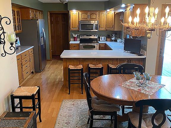 Beautiful 2 story family home on a 1/3 acre lot with mature trees and landscaping. The home has 3689 finished sq ft with 5 bedrooms and 3 1/2 baths. Solid oak 6 panel doors throughout and oak floor in entry and kitchen. Spacious family and formal living rooms have 10’ ceilings and share a two way fireplace. Large casual dining area in the kitchen as well as a formal dining room that could be your in home office. Main floor laundry and 1/2 bath are adjacent to the kitchen. The upper level has 4 bedrooms including a large master suite with a jacuzzi tub and shower along with dual sink vanities, heated tile floor and large WIC. A 2nd full bath is also upstairs. Lower level features a large family room, 5th bedroom, full bath and a dedicated pool table room and wet bar. High efficiency HVAC(2013) with 4 zones. Recent updates(2014) include new roof, gutters, Andersen windows, insulated garage doors and security system. Exterior paint and driveway (2020). Large 3 stall garage has hot/cold water, heat and epoxy floor. Spacious outdoor living area with large deck, paver patio, salt water hot tub and cedar fence.