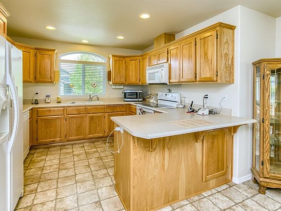 Delightful and Charming home in wonderful Redwood neighborhood. One owner & immaculate condition. Just like new. The size of the large backyard makes this stand above the others! With carpet, vinyl and window coverings all in move in condition. Vaulted living room with ceiling fan and slider to back patio. Kitchen with tons of storage including pantry and breakfast bar. Laundry room with cabinets. All 3 bedrooms have ceiling fans. Easy landscape, completely fenced back yard, with covered back patio, wonderful to enjoy the distant mountain views. Finished garage with storage cabinets and mud sink. This home is well loved and will not last long.