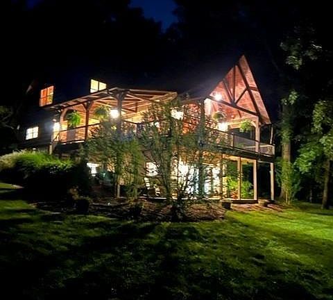 Absolute Paradise. Beautiful custom built 1 owner timber frame log cabin with a country feel. It's a nature lovers dream! Enjoy wildlife visiting the yard and Creek. The layout offers 4 bed & 3 1/2 baths including 2 primary bed w/ ensuite bathrooms. Floor to ceiling stone gas FP. Half wrap around porch facing the Creek. Amazing views from every window. Loft in upper level & bonus game room area on the lower level. This home is perfect for entertaining on every level all situated on 4.5 acres