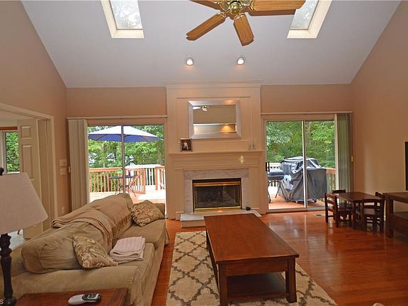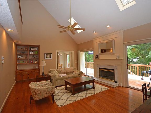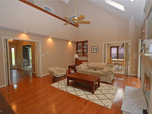 Spacious & bright family home offers open floor plan w/lots of natural light. Large updated kitchen w/both a prep island & dining peninsula! Vaulted Brkfst rm w/skylights & wall of windows. Vaulted LR/Den w/hrdwd floors, gas fp & skylights. ML Master Suite w/huge walk-in closet(s). 2nd floor has 2 addtnl bdrms, full bath & ample storage. LL is 1100+/- sq ft w/Bonus Rm, 4th BR & full bath. Cul-de-sac lot w/woods behind back & oversized deck. New HVAC! Great Location -close to local shopping & dining!