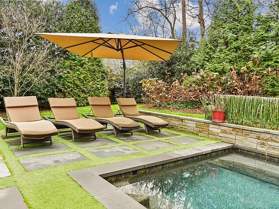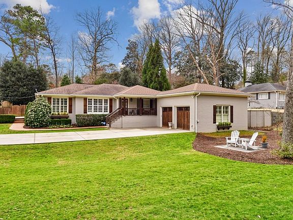 Nestled on a gorgeous deep lot with lush landscaping, this Brookhaven charmer is designed for entertaining with fabulous outdoor poolside living at its best. Move right in this pristine brick traditional with flexible floor plan and absolutely stunning heated swimming pool with total privacy in your own oasis. Inviting covered front porch with sitting area sets the stage for this handsome home with designer touches throughout. The open floor plan is designed for today's life style with great flow from the light filled Living room and Dining Room to the sleek new kitchen with custom island and serving bar for casual dining. Enjoy entertaining in the spacious Family Room/Sunroom with fireplace, banquette, windows galore and brick accent wall. Walk out to your private Key West style setting with expansive outdoor patio with stone walls and fabulous entertaining areas including an enclosed outdoor bar with private entrance, half bath, and outdoor shower. Additionally there is a separate building for storing toys, floats, etc. Get ready for fabulous al fresco dining with lots of room for grilling and multiple seating areas. Relax poolside in the 12' x 20' heated pool surrounded by professionally designed mature landscaping for the ultimate private retreat in the flat fenced yard. Designer kitchen features beautiful cabinetry, quartz counters, subway tile backsplash, farmhouse sink, stainless appliances including new gas range with grill and double ovens, plus wine refrigerator. There are 3 Bedrooms on the main floor. Primary Bedroom features a walk-in closet and private bath with large walk-in stone shower with seamless shower door and multiple rain head faucets including overhead rain shower. Two additional Bedrooms on the main with full tiled bath with large glass enclosed tub. The finished lower level with full tiled bath with shower and cozy built-in bed for guests boasts exceptional storage with built in cabinets. Large laundry room in terrace level. The new two car detached expanded garage connects to the main house on the covered porch and was designed to accommodate large SUV's. There's even more storage in the detached garage. Exceptional parking for multiple vehicles with a large driveway and secondary driveway parking pad. Rich hardwood floors throughout the main house with plantation shutters. Irrigation system. Just minutes from Buckhead and Morningside/Virginia Highland with low Dekalb taxes in Lavista Park, this pristine gem is a perfect 10!