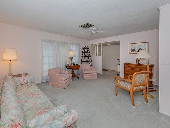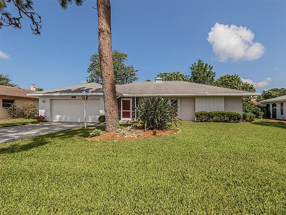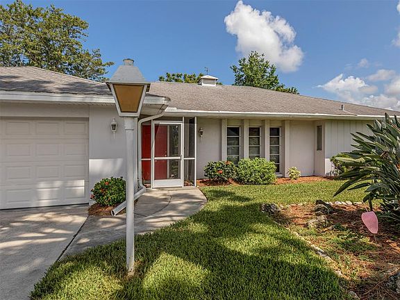 Come check out this 2 bedroom/2 bath/2 Car Garage home featuring a SPLIT FLOOR PLAN in the highly sought after Pinebrook South community! Relax and enjoy your coffee or entertain in the large fully enclosed Florida room with Hunter Douglas Sun Screens you can see through but the sun is reflected. This home has an irrigation system with water that comes from a well, no extra water bill! The A/C System is brand new March 2022, Water Heater installed November 2021, and there are newer windows with hurricane shutters throughout the home! The Pinebrook south community has great amenities with a clubhouse, pool, shuffleboard, kayak storage, boat ramp and more. The LOW HOA fee is $396.00 per year! Call today for your private showing!