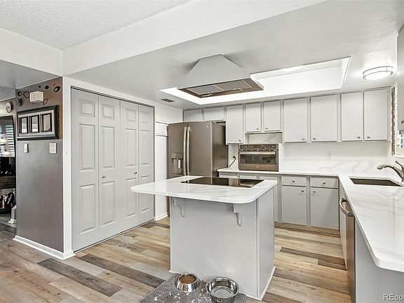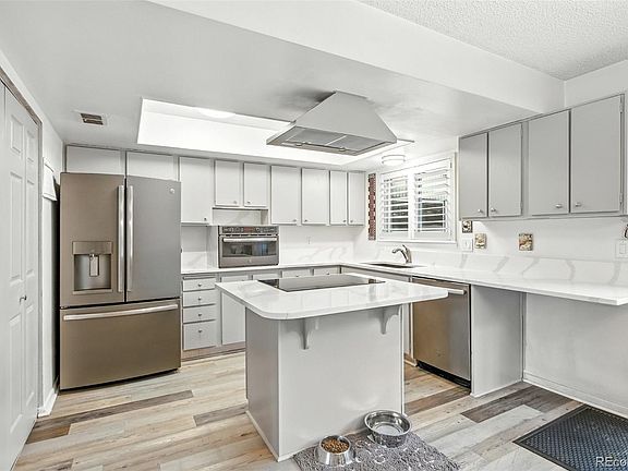 The fully remodeled kitchen is a true centerpiece, showcasing GE Slate appliances, quartz countertops, new cabinetry, & a layout ideal for cooking & entertaining.