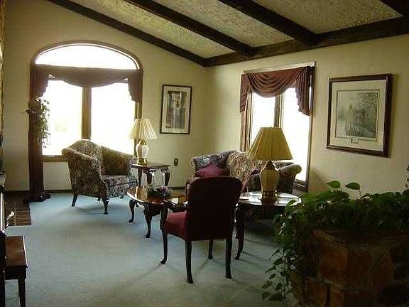 Beautiful custom home in the country set off the main road. Extensive landscaping on the grounds with perennial beds and trees, large aireated pond.. Horse barn 48x36 with pastures and an outdoor riding arena. New ceramic tile in the foyer. Wonderful large eat in kitchen with island and sky lighting. Dining room opens onto living room with vaulted ceilings & massive stone, wood burning fireplace. Library on the main floor, perfect for home office. Master bath with a ball & claw soaking tub.