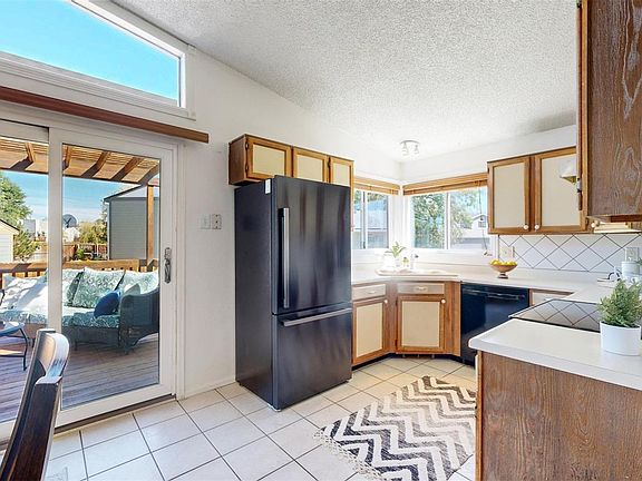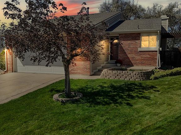 Woodglen Meadows – a quiet and friendly community conveniently located near schools; shopping, entertainment & dining; Carpenter Rec Center; Active Adult Center; I25, Hwy 85; E470; all with NO HOA or Metro District! This inviting 3 bed/2 bath home offers comfortable living space on a cul-de-sac with excellent and caring neighbors. The lower level has been converted into a 3rd bedroom with ample space for a desk or reading nook; two closets, and sliding door access to an outside patio where you can enjoy a cup of coffee and a good book during our warmer months. A ¾ bath includes the washer/dryer (included). The upper level features two nicely sized bedrooms, vaulted ceilings, all new flooring, plus a full bath. The main level is vaulted with skylights and a transom window creating bright and airy natural lighting. The kitchen maintains its original charm and is open to many possibilities – all appliances (range and refrigerator are new) are included. The kitchen, dining space, and living room are open to one another for an inviting entertainment setup. Step outside to enjoy the lovely deck with pergola, perfect for relaxing and enjoying a peek-a-boo view of the mountains. The sunsets are absolutely spectacular!. A basketball court (with in-ground hoop) is the ideal backdrop for backyard activities. Or, convert the court to a hot-tub pad, foundation for a shed, or expansive patio space. Many options! The row of trees plus updated windows diffuse the road noise, plus there is plenty of room for a shed, garden space, dog run, or other outdoor feature of your choice. Many updates including windows and sliding doors; exterior siding; furnace/AC; closet organization; newer interior paint; new concrete pad/basketball hoop; new carpet (throughout) and LVP upstairs; new roof; new garage door; freshly stained deck/pergola. Welcome HOME!