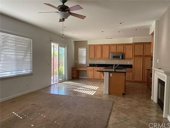 Eastvale beauty! This property is ready for you to move in This is a 2 story 4 bedroom with 3 full baths. Circular tile entry leading to living room with dining area. One bedroom downstairs with full bathroom glass enclosure. Family room with fireplace carpet and tile floors. Kitchen island with sink and granite counter tops. Stove top with granite counter tops. Plenty of cabinets with pantry, convenient work desk in kitchen. Upstairs has 3 bedrooms. At the top of the stairs to the left is a den/media room the projection system will stay, the master bedroom is large with high ceilings, bathroom is tile floor, and tile counter top, his and her sinks, separate glass enclosed shower, separate tub. separate toilet. Literal walk in closet. Other two bedrooms good size with fans. The backyard with its patio setting, and beautifully landscaped backyard and horse shoes anyone? This house also has 2 garages, one double attached and a separate single car detached. Central air and heating, again this home is ready for you to move in.
