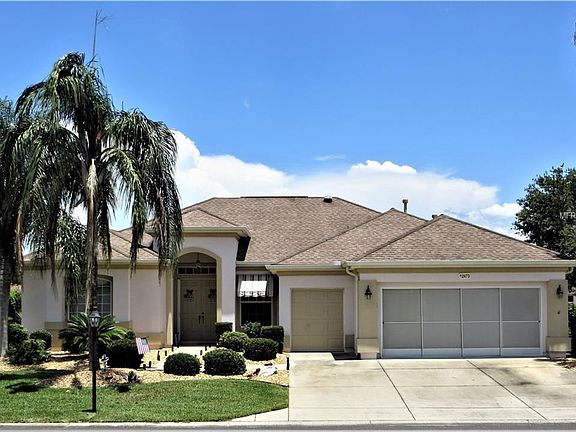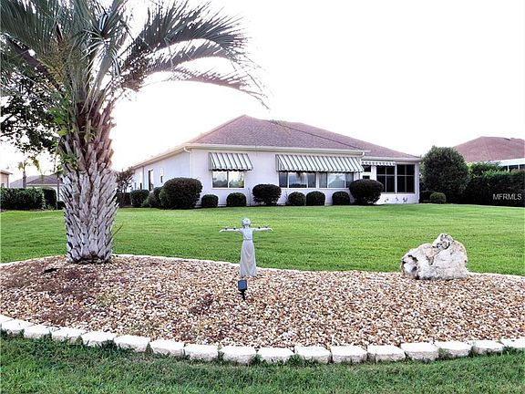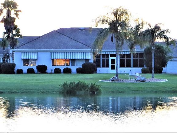 DON'T MISS THE AMAZING VIDEO FOR THIS STUNNING LAKEFRONT HOME. This 3BR/2.1BA Hampton is situated on a EXPANSIVE 123 ft lot overlooking a gorgeous lake. So many features to mention, but the highlights include: a golf cart garage, tile & engineered wood floors, granite counter tops,42" cabinets, large double-door pantry, spacious great room with wall to wall windows overlooking the lake, designed fans, master bedroom is served by a separate air-conditioning unit for maximum comfort and control. The dining room is set off with attractive wainscoting. The powder room is a definite plus. The acrylic enclosed lanai is the perfect place to enjoy your meals and the wide lake view...it opens to a brick patio with a retractable awning and beautiful yard. Take a chair and a book down the water's edge or drop a fishing line into the stocked lake. The garage is immaculate and well-organized. Two AC systems (2012) ensure your comfort. An electric dog fence will remain. Spruce Creek offers an active lifestyle and fascinating people...the Sports Complex and pool are within easy walking distance. This home has so much more to see...don't miss it!