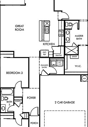 Entertain with ease in your spacious, new kitchen with adjoining great room and dining space. Natural wood cabinets, speckled granite countertops, complimentary carpet and 12"x12" Matte Silver tile in our Essential package.