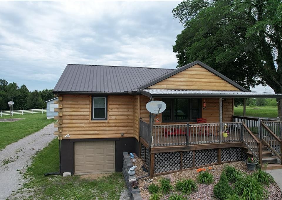 ***Price Improvement and motivated seller *** This charming three-bedroom, one-bathroom home is nestled on 16 acres of land, offering excellent hunting opportunities. With its inviting log cabin ambiance and a picturesque covered front porch, it provides an ideal retreat for relaxation. The property includes a barn with two stalls and a loft for extra storage, perfect for a hobby farm. Additionally, a spacious detached shed serves well as a workshop or for storing tools and equipment. A concrete patio on the side of the home enhances outdoor entertaining. This meticulously maintained home boasts recent upgrades including a new metal roof installed in 2022, another on the garage in 2023, a brand-new furnace, and thermal windows installed in 2015, ensuring enhanced sound insulation. Positioned at an attractive price point, this property has potential for equity from the outset.