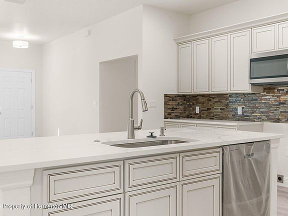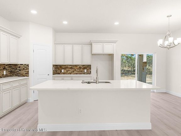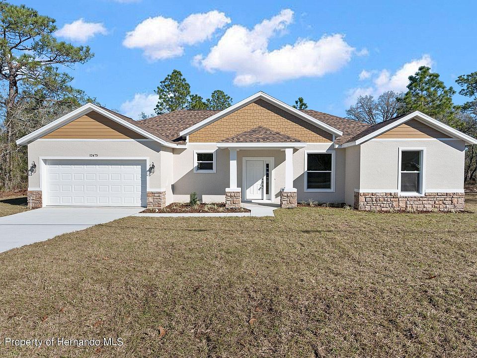 BRAND NEW LUXURY HOME without the year-long wait for it to be built or unknown final cost!! NEW CONSTRUCTION, MOVE-IN READY!! PAVED ROAD! The only thing you need to do is decorate to make it your own!! Offering 3 bedrooms + 2.5 bathrooms + 2 car garage nestled on over a 1/2 acre in a great location close to shopping and zoned for the county's newest schools (K-12)! This Craftsman-style home with country appeal and stone accents - offers you that southern country feeling! NO HOA! 1,949 sq ft living space; 2,643 total. In the rear of the lot, beyond the backyard, it was left wooded for that privacy everyone desires - no rear neighbors to look at and no one to look at you! The stone entry way & front door welcomes you and your guests into the grand center of the home with large open great room, island-style kitchen and dining room all with 10' ceilings! The high ceilings and open space offers you a light, bright, spacious feeling where your family can gather for years to come! Every inch of this custom home is upgraded and attention was paid to every inch and every detail including designer faucets and lighting, upgraded baseboards, upgraded windows/sliders, and continuous Luxury Vinyl Plank flooring throughout the entire home (no carpet)! The upgraded kitchen offers stunning Quartz countertops with the modern large, single-level island with breakfast bar big enough for the whole family! Warm off-white real wood upgraded 42'' soft-close cabinets with a stunning backsplash for that finished luxury look and feel. New stainless steal appliances! Generous-sized pantry! The builder's impressive 'Signature Laundry Room' of this custom home will make this your favorite place in the home - you'll take pleasure and pride in organizing your home and family from this amazing space! It offers matching Quartz counter tops and under-mount sink (instead of a plastic laundry tub), upgraded real wood cabinets (with upper cabinets too) with extra countertop and cabinet storage space that RIVALS the kitchen! The home has a split floor plan offering privacy to the owner's suite with large ensuite bathroom! Double doors open up into the private master bedroom with a high tray ceiling and two large walk-in closets! The ensuite bathroom is a SPA RETREAT in itself with a large tiled soaking tub, separate over-sized, floor-to-ceiling tiled walk-in shower and designer shower head and frameless glass door, dual Quartz vanities and dual sinks, matching real wood upgraded cabinets with framed mirrors, designer faucets and lighting, and a separate toilet room for privacy! There is a half bath off the great room for your guests which is also conveniently placed by the door to the garage for the quick access when outside! On the opposite side of the home are the 2 additional generously-sized bedrooms with second full bathroom. Sip your coffee on your large back covered patio in the mornings! Multi-zoned sprinkler system & landscaping! Builder's Warranty provided. Quality Custom Builder. Zoned for the county's newest schools...Winding Waters K-8 and Weeki Wachee High School. NO HOA. NO FLOOD. Located minutes from shopping, restaurants, a hospital, movies, schools, Buccaneer Bay Water Park, kayaking the crystal clear Weeki Wachee River, sunsets at Pine Island, boating, fishing, swimming w/the manatees. 1 hr to Tampa & TOP US BEACHES! Virtual Staging.