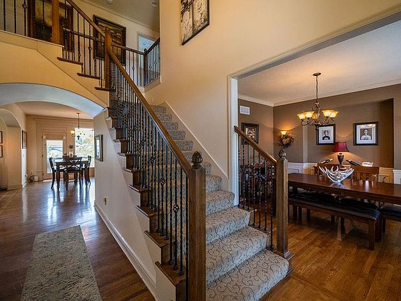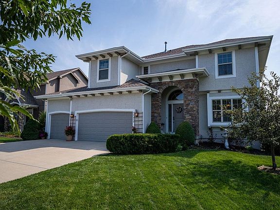 Beautiful Hawthorn I plan by award winning James Engles Home in coveted Forest View The Meadows, a Rodrock Development. Drive by the gorgeous 50' waterfall every time you enter your subdivision and smile from ear to ear. This home boasts of an open floor plan with spacious living room and stunning fireplace with huge windows allowing beautiful light to stream in. Gorgeous hardwood floors throughout first floor and living room installed in 2022. Kitchen cabinets painted 2022. Wonderful breakfast area and large kitchen with lovely granite counter tops and granite island perfect for entertaining. Large walk in pantry with built in desk allows plenty of storage. Spacious master bedroom with large en suite with shower and soaker tub and VERY large walk in closet to have your own oasis. Huge laundry room is on 2nd level and has loads of extra storage. Finished basement with a bar area for a fun place to hang out with friends. Extra room in basement could be used for a workout room, office, library, non conforming bedroom you name it, plus gorgeous brand new finished full bath. Spacious 3 car garage with high ceilings. New Exterior paint 2022. Sit outside on your large upper deck or enjoy some solitude on the lower patio with a fire to create a relaxing ambiance. Sprinkler system in front and back with backwash system so no need to winterize, no hassle. The home is adjacent to Forest View Elementary School, a Franklin Covey Me Lighthouse school. Middle school and Highschool are very close proximity and have programs and reviews worth looking up online. Forest View is a Premiere Rodrock Community featuring Water Park, Zero Entry Pool, 50 foot Waterfall, Volleyball, Basketball, Pickleball and Picnic areas. And all of those wonderful amenities are just down the road from the house. You also have Access to Cedar Niles Park within the Community for walking and biking trails. Lake Olathe Park nearby. This home is a beauty and this community is lovely and waiting for you!!