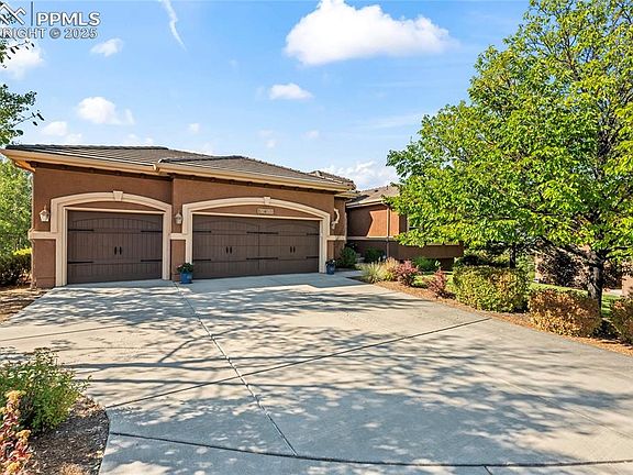 This exquisite 5-bed, 4-bath home is situated in the highly sought-after Stone Crossing at Middle Creek neighborhood. The property boasts a spacious 3-car garage. The heart of the home is its recently updated kitchen with resurfaced cabinets and newer appliances. Upstairs, new carpeting adds a touch of luxury and comfort while refinished hardwood floors on the main level enhance the home's elegance. Outdoor living is equally impressive, featuring a durable Trex deck with the perfect setting for gatherings or enjoying the fully landscaped yard and gorgeous mountain views, including Pikes Peak. The stunning walk-out primary suite is a true retreat. The spacious bedroom opens directly to the deck. The 5 piece bath is designed for relaxation. Completing the suite is an impeccable walk--in closet, thoughtfully designed with ample storage and built in organization. The impressive walk-out basement offers a spacious and versatile living area. The large family room, complete with a wet bar and refrigerator, is ideal for entertaining. With 3 generous-sized bedrooms and 2 baths, there is room for all. Two furnaces ensure customized climate control. A radon mitigation system has been installed. This home is served by Academy School District 20 and is conveniently located close to shops, restaurants, and access to I-25. The pride of ownership is evident in every detail of this home. Your buyers will appreciate this home and the beautifully landscaped walking trails, mature trees, and ponds. Don't miss this one!