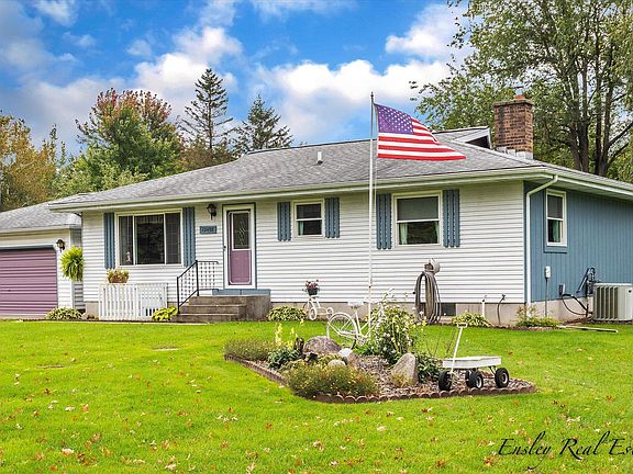 Fall in love with this 3 bed 2 bath Ranch home in Greenville Schools. Instantly be impressed with the open big kitchen & dining room. Abundance of cabinets & Corian countertops, pantry, island, all appliances staying, access to the mudroom/breezeway connecting the oversized 2 stall insulated garage. Dining has sliders leading to the huge deck overlooking the large yard featuring a garden area & 2 sheds. Main level also features a spacious living room, the primary bedroom w/ double closets & full bath, 2nd bedroom & 2nd full bathroom. Basement has a family room, 3rd bedroom & laundry/storage/mechanical room. 4 yr old pellet stove, water softener, washer & dryer all stay. Newer updates include a roof, water heater, drainfield & more! Don't miss this out on this one! MOTIVATED SELLERS!