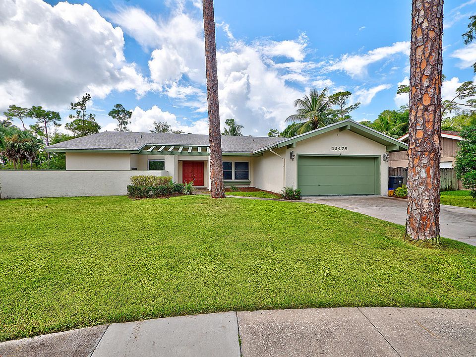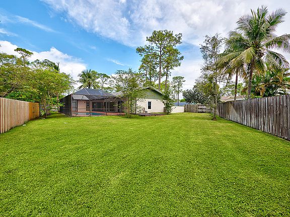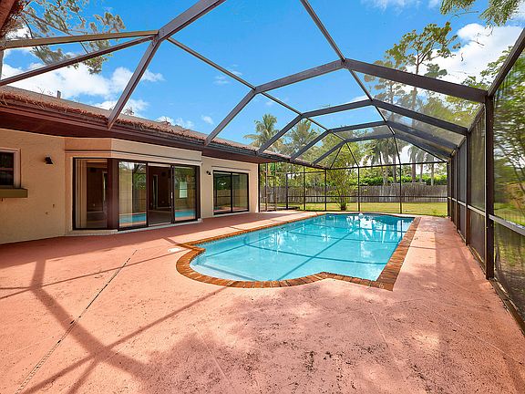 Spacious ranch-style single family home boasts four full bedrooms plus an additional den/office and three and a half bathrooms and an oversized two car garage. This beautiful home is situated in Wellington's desirable Pinewood East community. Enjoy ''A'' rated schools, easy access to US-441 and Florida's Turnpike, shopping, restaurants and parks.Peaceful and private, this home features a very large, pie-shaped one-third of an acre lot on a cul-de-sac. The huge fully fenced backyard is one of the largest yards in the community and includes a beautiful screened-in swimming pool. Impact glass in all windows, panels for the sliders.