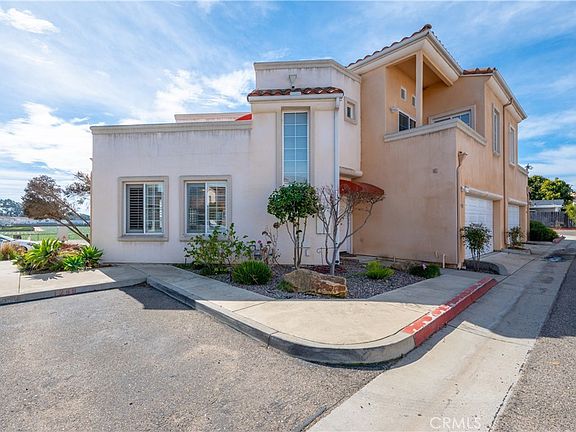 No HOA dues! Spacious, open, bright and in fantastic condition, this 3 bedroom, 2 1/2 bath Grover Beach home with a 2 car garage is everything you need and near everywhere you want to go. Walk or bike 1.5 miles to Grover Beach access or 3 miles to either downtown Pismo Beach or the Village of Arroyo Grande. This home, in a small, well-cared for community of 8 homes built in 2004 is close to all Five Cities conveniences and HWY 101. It fits daily central coast living or, can provide lock and leave ease for an on-the-go owner. Designed with indoor/outdoor living in mind, there is an inviting and private ground level patio yard suitable for outdoor grilling, dining and lounging. Additionally, a big second floor roof deck provides a second space for entertaining and enjoying beachy weather and views of strawberry fields, eucalyptus and town. The main living area is open, yet connected, airy with high ceilings and lit by natural light from abundant windows througout. The living room is big for lounging and entertaining, cozy from the gas fireplace or cool from the light and breeze of windows, flowing into a dining area with slider to outdoors. The kitchen with generous cabinets and breakfast bar is both functional and roomy. A powder room is tucked away for main level convenience off the laundry room. Thoughtfully designed, storage and functionality were not neglected in the design of this home. And neither were recent upgrades. In September of 2023, an entirely new GE appliance package was installed in the kitchen and the downstairs was painted throughout. In January of 2021, a new soft water and reverse osmosis system was purchased and installed. Head upstairs where you'll find two bright guest rooms and one guest bath, more storage, access to the large deck and an ample primary bedroom with walk-in closet, en suite with separate WC, huge double vanity and separate shower and bathtub. Enjoy town and mountain views from your personal deck off a wall of windows and sliding glass door. Truly this home is an opportunity to have not only great space, smart design and move-in conditon, but a location on the pulse of the central coast.