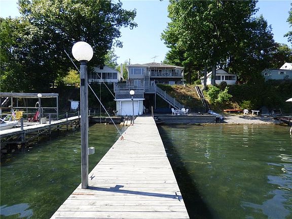 Amazing Seneca Lake home on 52 feet of pristine waterfront! Plenty of parking with this 3 bed, 3 bath ranch style home with fully finished walkout basement. Plenty of outside waterfront spaces with dramatic views of, both north and south ends of the lake. Minimal stairs to the lakefront make enjoying this waterfront easy. Large dock for your boats, kayaks, canoes and jet skis. Going indoors you will find a wonderful great room with open floor plan. Romantic gas fireplace adorns the main living room, and large dining area for family and friends. Kitchen with new tile flooring, hardwoods throughout the main floor. Basement finished with additional bedroom and bath, large family room w/bar and workout space. This home has alot to offer and won't last long.