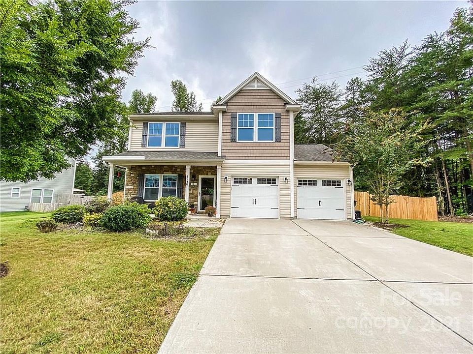 You will be wowed by this beautiful well kept home (3 bed/3 bath), featuring new wood laminate flooring on main, updated lighting fixtures. The lay out of this home, plus the backyard makes this the perfect house for entertaining. Dining room and kitchen look out over the beautiful fenced yard and wooded area, so you can sit out under the trees or enjoy a lovely evening at the fire pit on those chilly nights. Large patio. Open concept living area on main, includes mini office conveniently located near kitchen! Large kitchen with breakfast nook, eat at Island plus a dining room (could be an office). Spacious bedrooms upstairs with two full baths. Master has walk-in closet and over sized shower. 10 minutes to historical downtown clover, 25 min to Charlotte