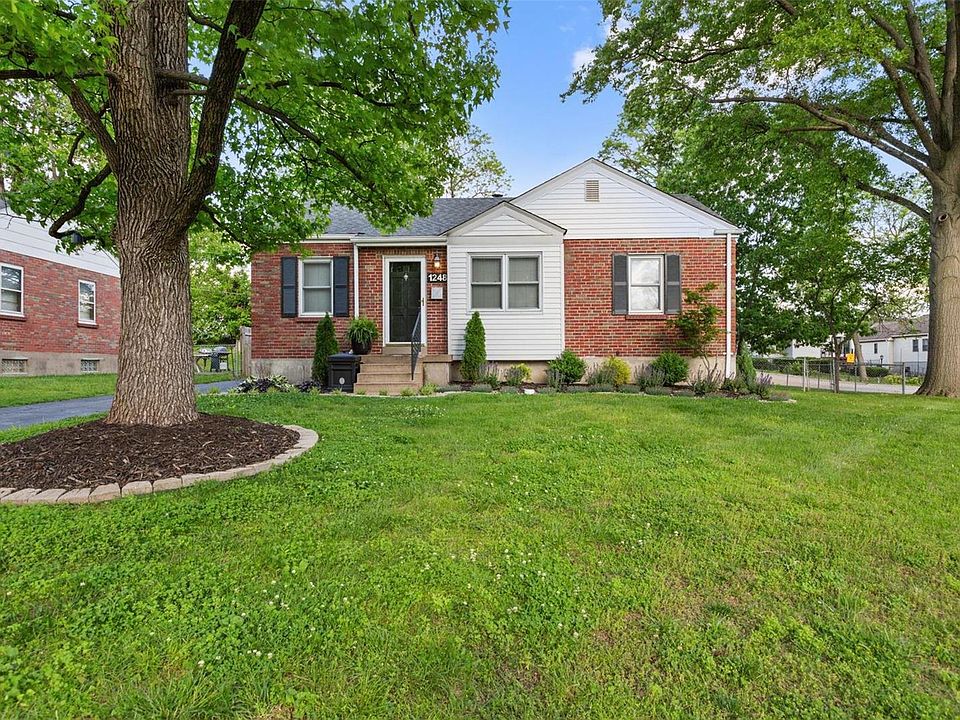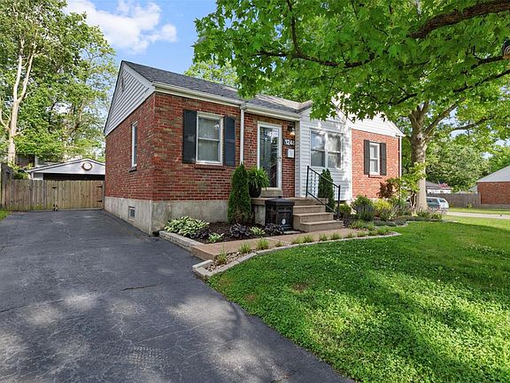 Est. 1951. Welcome to your beautiful new home in Rock Hill! This nicely updated 2 bed, 1.5 bath brick ranch exudes character & modern flair. Step inside to find classic hardwood floors throughout most of the main level, complemented by ceramic tile in the kitchen. The kitchen is a chef's dream, featuring maple cabinets, quartz countertops & ss appliances. Enjoy gatherings with loved ones in the large fenced backyard, complete with a stunning paver patio. The front & backyard are beautifully landscaped, adding to the overall charm of this home. Parking is a breeze with a 2 car detached garage. Need extra space? The partially finished LL boasts a family/rec room & half bath. With close proximity to multiple restaurants, a wide variety of shopping options & quick access to interstates, convenience is at your fingertips. Located in the highly rated Webster Groves School District. Don't miss out on this darling home that truly has it all. Start creating memories today!