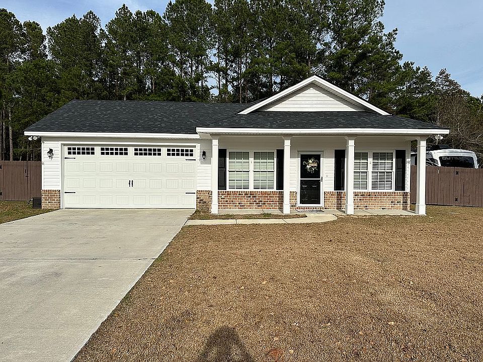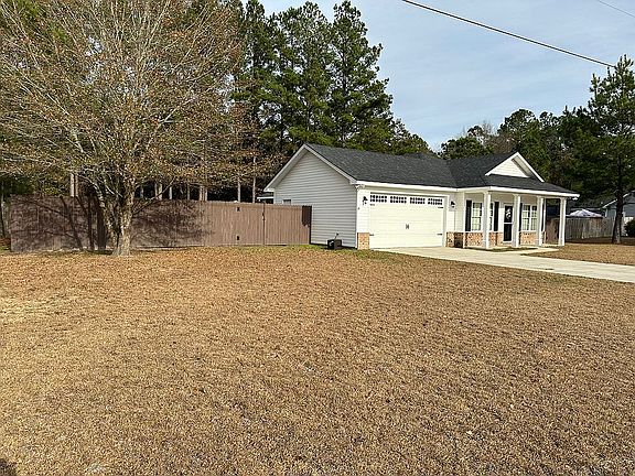 Coastal Pines Subdivision centrally located in McIntosh County, GA off Smith Rd. NO HOA in this community. This particular listing features "The Hannah II" floor plan, located on a 1.58 acre lot w/YKK energy star certified windows, 30 yr. rated architectural shingles, spray foam insulation, white appliances, breakfast bar, premium hardwood laminate flooring throughout & double car garage. The master suite includes private covered screened patio off rear, separate shower, garden tub, & dbl vanity. The yard is professionally landscaped, including SOD front yard w/irrigation system. Seller is also including detached Cook Warehouse Storage Building, aprx. 16' Long by 10' Wide - Double door way when opened is 6Ft. Wired security camera system. New flooring and fence installed in 2021. 50 AMP receptacle for RV. The house is located about 30 minutes from FLETC, an hour and thirty minutes from Jacksonville, an hour from NSB Kings Bay, and an hour from Savannah.