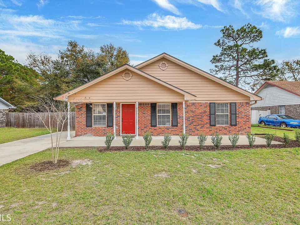 Fantastic price on this move-in ready all brick ranch located in Eagles Landing! This home is just minutes away from Fort Stewart Army Base, shopping, schools, and restaurants. This nice all brick ranch sits on a quiet cul-de-sac and features 3 spacious bedrooms, 2 full bathrooms, fresh interior paint, an open, eat-in, fully equipped kitchen, a large living room with a fireplace, an owner's suite with an owner's bath, a side patio, a large fenced yard, nicely landscaped, and so much more!! Hurry! This deal won't last long!