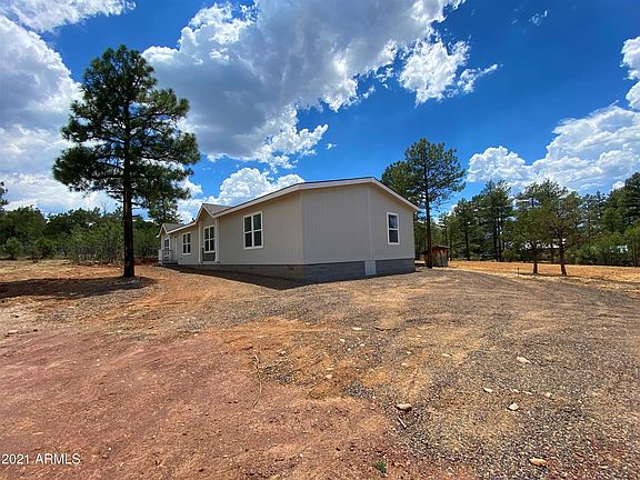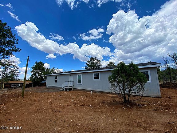 Minutes outside of Show Low, nestled at the end of a quiet cul de sac on 1.22 secluded acres, prepare to fall in love with all this newly built 2021 Pinedale home has to offer! SO. MUCH. SPACE. to enjoy! Enter to find a great room with neutral tones, gorgeous wood-look flooring, and ship lap entertainment wall. The farmhouse style kitchen is absolutely adorable, w/abundant white cabinets, pendant light, island w/breakfast bar, farmhouse sink, & large eating area. The split floor plan offers a large Master Suite w/double sinks, W/I closet, & separate shower/tub! The north wing of the home provides 4 more BRs and 2 more BAs! New water heater, new AC unit, & large laundry w/exterior door! Outside enjoy the rustic barn, shop, woodshed, room for horses and a garage! Best of all, NO HOA! Hurry!