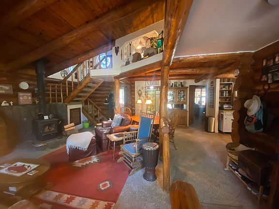 LOG CABIN in Woodland Park neighborhood near Collier State Park. Quaint, cozy, unique REMODELED cabin on 3.55 Acre Horse Property. New fencing, shelters, outbuildings; Separate Bath House with private outdoor Shower & Hot Tub, Barn (3 Stall,Tack Room, 8-10T hay Storage), Large metal Double Carport, Wood Shed/sm. Shop/Chicken House, Green House/garden. Nice 20ft.Trailer for Guests. Covered Dog Kennel attached to cabin. NEW metal Roof on Cabin & all new appliances. New Shelters in Pastures. Good Well and new 2500G Cistern for backup Water supply to barn. Plenty of room for parking & RV & a RV dump; Covered back Porch w/screened windows. Yoga Deck off large Master Bedroom w/Skylights in Vaulted ceilings. Walk to Deeded River Access Lots on Williamson River for fishing, swimming, kayaking. Trail ride out from cabin to State Park & Forrest. Private quiet Neighborhood, gravel road. 15 min. drive to Chiloquin, 45m. to Klamath Falls & 1hr. to Crater Lake.