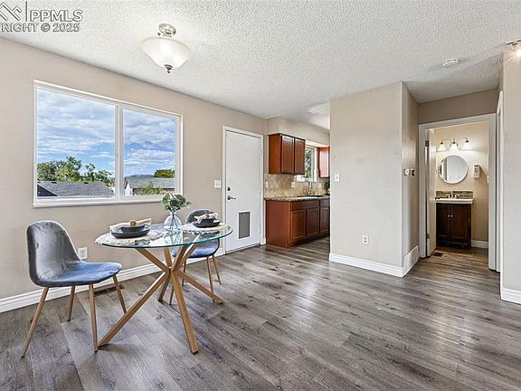 First time home buyers and Military move-in ready! Minutes from Ft. Carson, Peterson, and Schriever, this updated home. Large cul-de-sac lot with luxury vinyl floors, upgraded kitchen including granite countertops and modern powder bath, plus three bright garden-level bedrooms and updated full bath with beautiful tile details. ALL newer mechanicals, central A/C and Furnace with UV light, and solar panels for energy efficiency and peace of mind! Enjoy Pikes Peak sunsets from the deck, oversized paver patio for entertaining, and a level backyard perfect for play. Oversized garage provides extra storage or workout space — move-in ready and full of Colorado lifestyle!