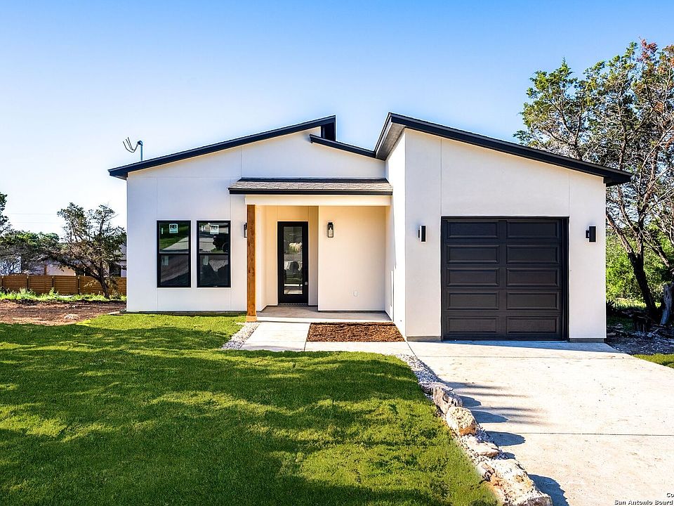 **OPEN HOUSE** This Saturday from 12pm-3pm. Beautiful luxury Lake house situated in the heart of Texas Hill Country with access to Canyon Lake. This Modern open floor plan-design newly built home will welcome you with 10 ft ceilings, an open living-room kitchen area, lots of windows and a nice flowing space to the outdoors where you can enjoy the quiet hill county peacefulness. Interior features include Spray Foam insulation w/an Energy Star Certificate. LED lighting throughout, with Quartz Counter-tops, and Stainless Steel appliances in the kitchen. Beautiful Canyon Lake access only a short drive away. Walking trails, Boat ramp #11 access, short drive to the Canyon Lake Marina. 1-2-10 Builders Warranty. Lender Incentives included w/preferred lender.
