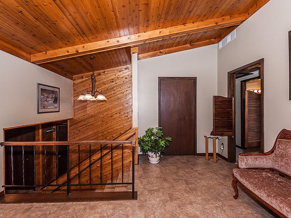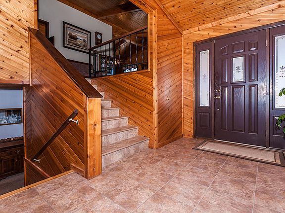 This beautiful home sits on a tree lined, 1 plus acre lot in a location convenient to schools and shopping. This split level 4 bedroom, 1 3/4 bath home features an open, airy layout with a spacious foyer, vaulted living and dining areas with patio doors leading to an awesome 4 season porch, all with the added beauty and warmth of cedar ceilings and walls.