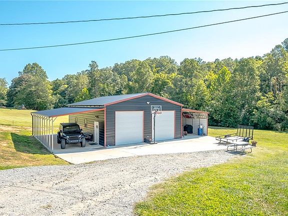 This beautiful home feels like a retreat, offering a rare combination of space, updates, mountain views, and a peaceful setting. Upstairs you’ll find 2 bedrooms, an office, a full bath, a lovely kitchen that flows into the living room, and a convenient main-level laundry. The fully finished basement includes an oversized den with large TV, perfect for movie or game nights, a hidden room with safe behind a bookshelf, a sitting area with full bath, and a small sewing or craft room. The walk-out basement opens to a covered patio with hot tub and TV overlooking a serene field. Exterior highlights include a 30x40 garage with two 18x40 lean-tos and an 11,000 lb lift, providing exceptional flex space for hobbies or storage. Just minutes from Hanging Rock State Park, this property is truly a must see!