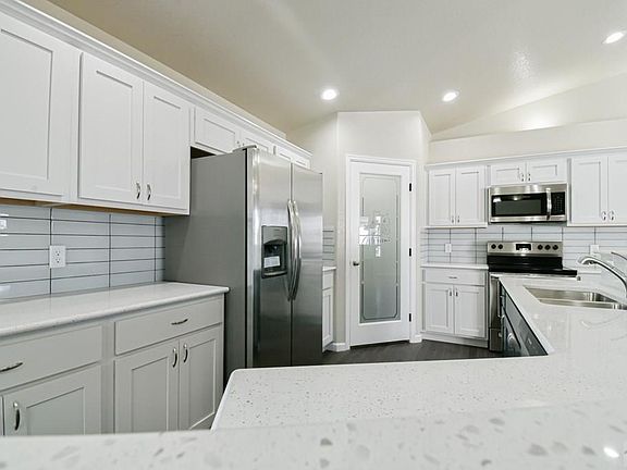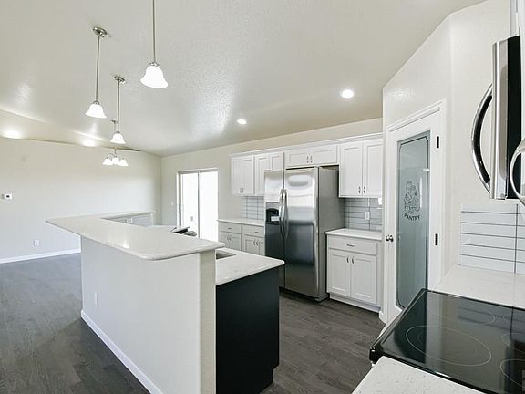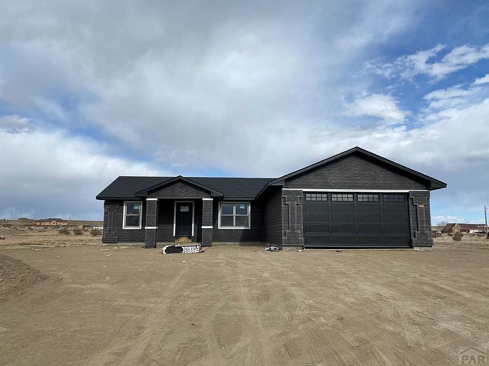 Beautiful new build with mountain views in quiet cul-de-sac on the North side of Pueblo West! Stacked stone accents the front columns and entryway of this home and highlights the curb appeal of the home - all complete with windowed garage doors! Open the door into an inviting open floor plan with vaulted ceilings and wood floors. Kitchen comes complete with soft-close drawers, cabinets, granite countertops, tile backsplash, large counter-height island, walk-in pantry and all stainless steel appliances. Split-bedroom design with private master suite complete with walk-in tile shower. 2 more spacious bedrooms on the main level with a full bath in between perfect for your guests. All of this PLUS a finished family room in the basement - perfect for entertaining! Home also comes complete with upgraded septic system to accommodate future bedrooms in the basement. This home will be similar to pictures. Not too late to pick your own colors!