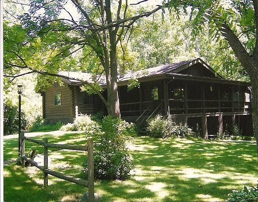 3.65 ACRE HEAVILY WOODED PROPERTY W/2-3 BEDROOM LOG CABIN FEATURING GUEST QUARTERS IN 'WALK-OUT" LOWER LEVEL TO PATIO/CARPORT TO 2+ CAR GARAGE. HOME OFFERS OVER 1500 SQ. FT. OF LIVING SPACE ON 2 FLOORS INCL. OPEN LIVING AREA W/WOOD-BURNING FIREPLACE EXPOSED TO DINING & KITCHEN AREAS W/ EXITS TO SCREENED PORCH & DECK OVERLOOKING PASTURE, WOODS, AND NEARBY FARMFIELDS. OUTDOOR SHEDS FOR STORAGE.