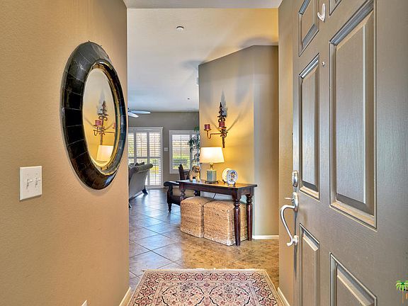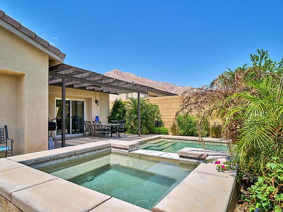 This beautifully upgraded Tierra Linda model is meticulously maintained with 3 bedrooms and 2 baths. Upon entering you'll be greeted by a spacious Great-room, island kitchen with crisp white cabinets, SS appliances and granite counters. Plantation shutters add to the charm throughout. In the living area enjoy refreshing views of the pool & spa while relaxing in front of the fireplace. The generous master bedroom boasts a with seating area and over-sized walk-in closet. The custom designed backyard offers sparkling pool, over-sized spa, fire-pit, night lit succulents, views of the San Jacinto and San Bernardino Mountains as well as the Palm Springs Tramway.