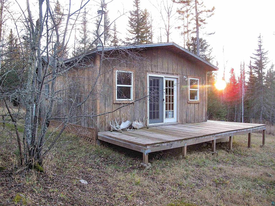 Good, getaway on the Pike Lake Road. Prime location out north of Babineau Corner – out in the wonderful woods of the Superior National Forest! Yet not too far to Grand Marais and all the fun and doins’ there! 13+ acres of elbow room and “plays” even larger, abutting public land on the north side. The SW corner “kisses” public land, too. Sweet Murmur Cr gets its start out this way and cuts across the property providing additional interest to the surrounding pure boreal woods. Cabin is all about functionality and creating memories! Two full-size bunkbeds make this place the ideal deer camp, family getaway, or open it up and make the place a studio for dreaming big and making stuff! Stalwart woodstove keeps it cozy even during the deep winter cold. Propane wall furnace is steady-eddy. The cabin started life back in the 50s, so there’s a vibe here! Then came a 2001 addition by the current owners, lovingly envisioned and labored on to make this just the perfect go-to for adventure, escape, or remotely doing the job with the fiber optic purring at the wall! Big ‘ol deck for BBQing, bird-watching, aurora borealis viewing… heck take a nap. Spacious shed keeps all the tools, etc and part of it has a simple, rustic shower. Legitimate, tidy outhouse. The land has a lofty feel, with good views to the setting sun each and every day you are out here living the woods-life. North side of lot has a good buildsite, well away from the cabin. So, dreaming here a bit, maybe you do a house over there eventually and the cabin becomes the guest place or a rental. Lots of options, and wow, hard to beat this price in Cook County! Come have a look: dream a bit and get going on that vision of realigning with your goals, the plan of getting a foothold Up North!