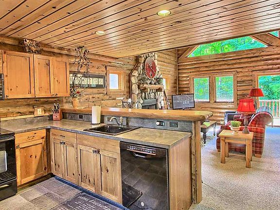 This luxurious home is a four-bedroom rustic mountain cabin that is built in a lightly wooded area, close to golf and the Alpine chair lift to the slopes. You get the best of both worlds- golf and skiing! This professionally decorated cabin has recently renovated from top to bottom including new flooring, quartz and granite counter tops, and furniture. The walkout full basement provides a great place for a second family to reside during a stay at the mountain. There are a stackable washer and dryer in the unit. Other features include: Incredible view of northern Michigan from the living room, spacious deck with a hot tub that is completely private, and only a short walk to a ski trail that you can take down to the Alpine chairlift.