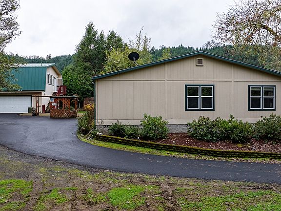 If you are looking for peaceful, private, oasis on the legendary fishing section of Umpqua River look no more. Enjoy the sound of the creek waterfall from your large covered deck. Garden & fruit trees. Home is spacious w/open floor plan. Kitchen has island & pantry. Large living room vaulted ceilings and built-ins. The Master suite has an attached bedroom. Plus, 864 sq. Studio apartment above garage w/ full bath & kitchenette. 3 car garage is extra deep and wide for shop. Out building W/ 2 bay shop with pole barn on level usable land, room for animals.