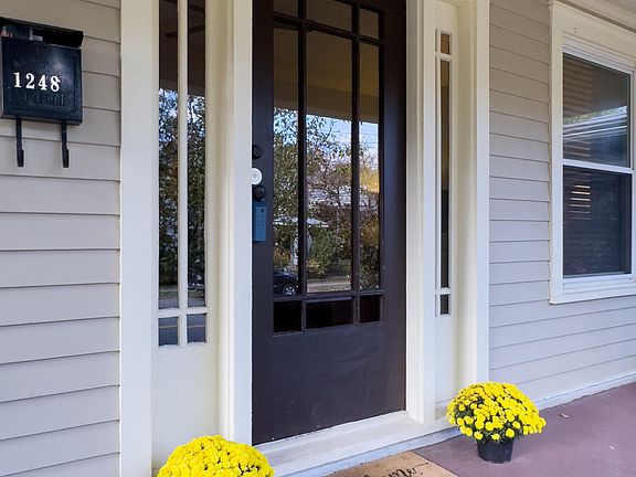 The primary bedroom, located on the first floor, offers dual closets for generous storage space. An updated full bathroom on this level brings modern comfort with tasteful finishes, seamlessly blending with the home's vintage character.