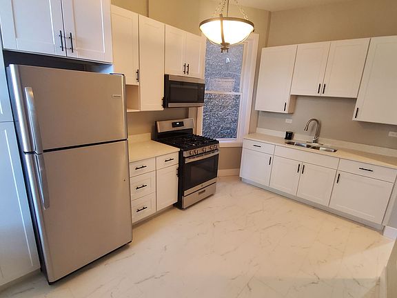 Beautifully renovated 2 Bedroom in North Lawndale. Brand new finishes throughout. Hardwood floors, granite counters, stainless appliances and more. Living room with gorgeous fireplace and huge dining area. Shared yard. Garage parking for additional $50 per month. Central heat and a/c. Alarm system. Close to Douglass Park, restaurants and CTA buses. Laudromat around the corner. Please note: the video is of unit 3, but all units in the building have similar layout, features and finishes. Unit 1 is a bit larger than unit 3.