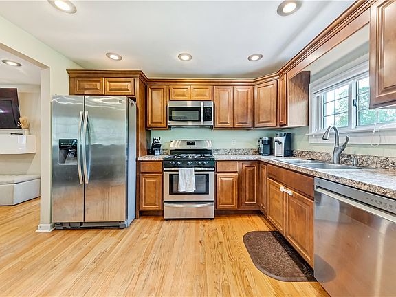 2 bedroom 1 full bathroom ranch home sitting on a full walk out basement. Open concept living! Beautiful deck over looking the back yard. 2 car detached garage. Newer kitchen & bathroom. Newer siding, roof, windows, and electrical. Central air. New 15x15 paver backyard patio & fire pit. Tons of parking.