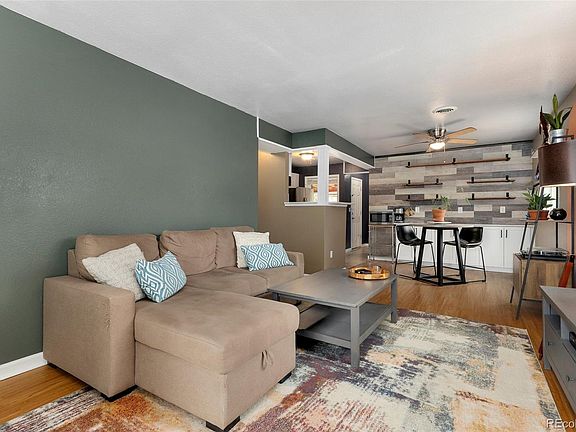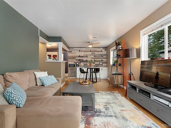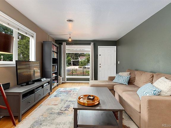 Charming Hoffman Town ranch with thoughtful updates both inside and out! Enjoy a modern open-concept floorplan accented by abundant natural light and fresh paint in a modern color scheme. The dining room is anchored by a shiplap accent wall, open shelving, and built-in cabinets with a granite countertop. Recently modernized, the kitchen delights with beautiful granite countertops, crisp white cabinetry, stylish black hardware, a classic subway tile backsplash, and stainless steel appliances including a new fridge. The floorplan is completed by a large laundry room with storage, 2 sunny secondary bedrooms, a full bathroom with a new toilet, and the primary bedroom that has a private en-suite powder room. Additional updates include a new sewer line and a new hot water heater. The expansive backyard has a new fence, an oversized storage shed, and a new spacious partially covered deck that is the perfect place to dine al fresco or host a BBQ. Wonderful location in a quiet yet welcoming neighborhood that is blocks away from Vaughn Elementary, public transportation, restaurants, and the Anshutz Medical Campus. No HOA!