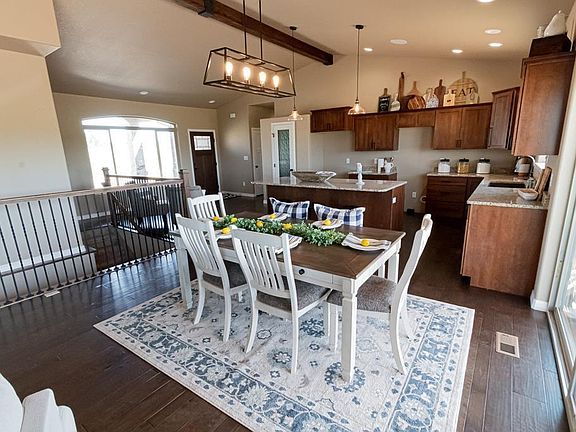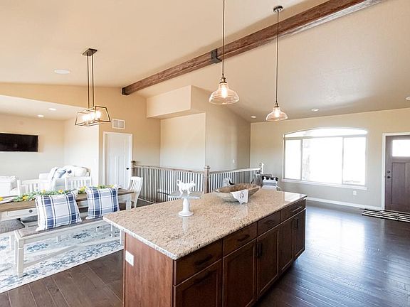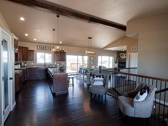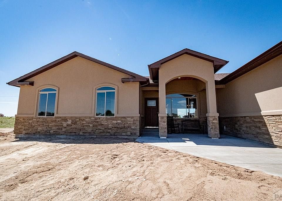 This stunning new home is packed with amazing features and will be featured in the 2019 Pueblo Home Builder's Parade of Homes. The main level boasts an open concept with a full stone fireplace, beautiful barn wood tiles throughout the Kitchen and Dining room, vaulted ceilings with a beautiful exposed beam, and wood and oil rubbed brown light fixtures. The Kitchen has granite counter tops, large island with seating, Moen plumbing fixtures, large walk-in pantry, LG gas range/oven and other LG appliances. The incredible master on-suite has dual Moen shower heads with a rain head in between, custom glass enclosure, double vanity, and a phenomenal walk-in closet. The rod-iron railing compliments the open floor concept and accents this luxurious ranch style home. The basement has 10' ceilings and an expansive living room with a wet bar and plenty of room for entertaining. The wet bar features custom cabinets, and shelving with room for multiple TVs. Synthetic stucco, 98% efficient heater, tank-less water heater and the upgrades go on.... The exterior has a concrete driveway, walk-ways and rear patio.