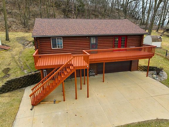 Enjoy the rustic charm of this log home nestled against a wooded hillside overlooking the city of St. Charles. The open concept kitchen, dining & living room has the spacious yet cozy feel. Beautiful natural hardwood floors run throughout the entire main level. This property features a private backyard that is frequented by deer, turkey and a plethora of songbirds. The front deck offers a sweeping view over the town. The lower level could be set up for separate independent living, as water and gas lines are stubbed in. This home has been very well maintained and has a newer roof. There is a two stall insulated garage and plenty of room for additional storage with two utility buildings. Easy access to downtown amenities and only 5 blocks to the elementary school. This is an ultra-convenient location being only 20 minutes to both Rochester and Winona.