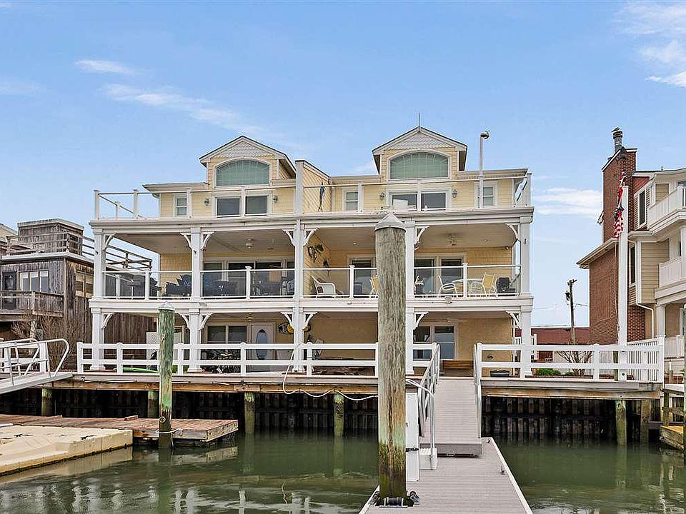 Truly one of the most stunning locations in all of Cape island. This 3 story custom built Townhome includes 3 floors of patio and luxury deck space. The beautiful sunset views and access to the Cape May canal and inlet make this home a very rare opportunity. Sportfishers and sailors alike will be in heaven with the all of the amenities and proximity to all of the local Marinas. The ground floor room can be your supply room, or game room as it comes with a half bath and kitchenette plus workshop. You can enter the home either through the main side entrance, the finished 2 car garage, , or through the ground floor den/family/game room. The tiled foyer leads to the three floor elevator or wide staircase up to the grand main room accented by a stone surround fireplace.. In the main room there is a custom Kitchen with endless granite counters, wine cooler and ice machine. The views from the great room and oversized deck are what Instagram was made for. There is a pantry, large full bath and double sized bedroom that was used as an office. This room can be converted back to two bedrooms giving you a total of 5 bedrooms. The third floor has 2 bedrooms with one full bath, a laundry room and a master suite and private deck fit for royalty. There are heated tile floors in the master bath and a cavernous walk in closet. The spaciousness and breathtaking views are an absolute must see experience. The home has a video security system and integrated sound throughout. Be sure to see the self guided 3-D walkthrough tour. Showings available by appointment only, all buyers must be prequalified. Buyers must satisfy themselves to the status of any riparian rights, grants, or leases for boat slips and bulkhead.