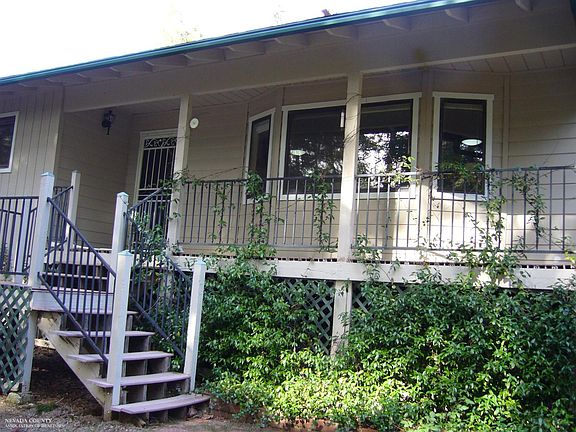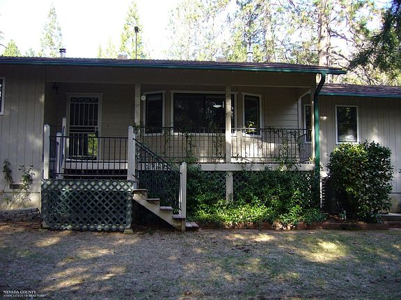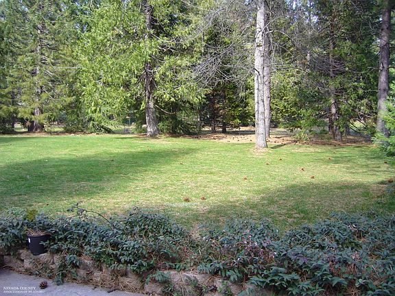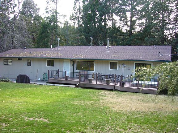 Country living at it's best. Large mostly level lot with expansive lawns surrounded by mature ponderosa pines, sierra redwoods, cedar and black oaks. House has been updated with a large country kitchen dining area combo including decorative antique wood stove, granite counters, SS appliances and oak cabinets. The living room features knotty pine highlights with a decorative Vermont Castings gas stove, tube lighting and bay window. A separate family room with den or 4th bedroom and bath make this wing perfect for an extended family member. Master bedroom has glass doors that access the deck and recessed hot tub. The 24x32 garage has two bays plus a third bay for a dedicated shop and loft for storage. The 2nd 24x28 garage has 10' ceilings cantilevered storage and both are wired for 220v. Perfect for the car enthusiast. Parcel perimeter is fenced for pet safety with an electric gate for security. Driveways are all concrete. The back deck and yard are perfect for family gatherings.