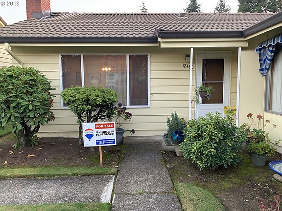 RARE private back end unit = less shared wall, multi windows plus manicured front/side yard commons! Deeded carport/pkg convenient to back entry too. Freshly painted int, new LVT kit floor, 2019 elect panel, HW floors, brick fireplace, dbl closets in MBR, Wash/dryer, refrig inc. Fenced covered patio & ever blooming garden. 55+ quiet complex on dead end st. Pool, clubhouse & strong HOA! Quick access to bus, shops, Hwy 205 & airport. [Home Energy Score = 3. HES Report at https://rpt.greenbuildingregistry.com/hes/OR10160776]
