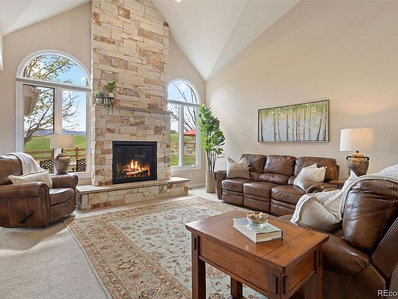 The heart of the home is the great room with a towering stone fireplace and mantel creating the perfect ambiance. The fireplace is flanked with walls of windows bringing in natural light, and perfect for golf commentary. This space flows into the eat-in kitchen outfitted with a fantastic appliance suite including a gas stovetop and double ovens. With 42“ cabinetry and a large pantry there is an abundance of storage including a built-in desk.