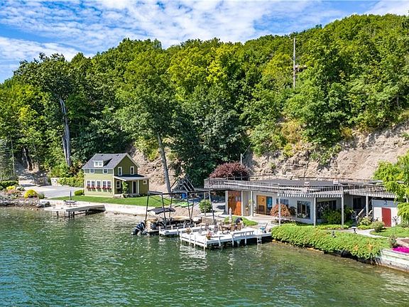 Wake up to the sounds of the water at this special property on Keuka Lake. When you drive down and enter this expansive property you will find privacy and exclusivity. It has been carefully acquired to create a serene environment with amazing potential to expand on what was carefully built, designed, & so enjoyed. With 300+ ft of water frontage, this offering includes 2 homes, 4+ parcels, 3 permanent docks. The "boathouse" was designed & engineered to begin an upwards large build. Currently 1 bed/1 bath, renderings will show the potential. The secondary classic cottage with 2 bed, 1 bath, sleeps 6 comfortably & is a wonderful guest house with income potential.This unique situation is a "see it to believe it" possibility. Square footage in MLS is for both residences included in this purchase.