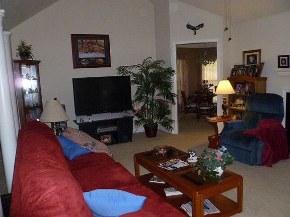 Open Floor Plan. Greatroom w/cathedral ceiling.Large eat in kitchen w/island. Front and side porches to porch and Deck on back. Fenced back yard with storage building to match House. Custom made plantation blinds.